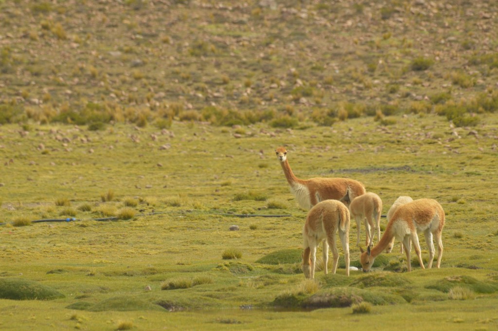 The return journey to Arequipa took us back across the altiplano which we had crossed in the darkness this morning. Once we were down and out of the high mountains, we reached a large stretch of Andean prairie, pockmarked with spongy pools. There was a small herd of alpacas grazing, but they weren’t alone. With the weather still holding out (and only just), I had the chance to see the vicuñas I’d only glimpsed this morning, grazing not too far from the road.