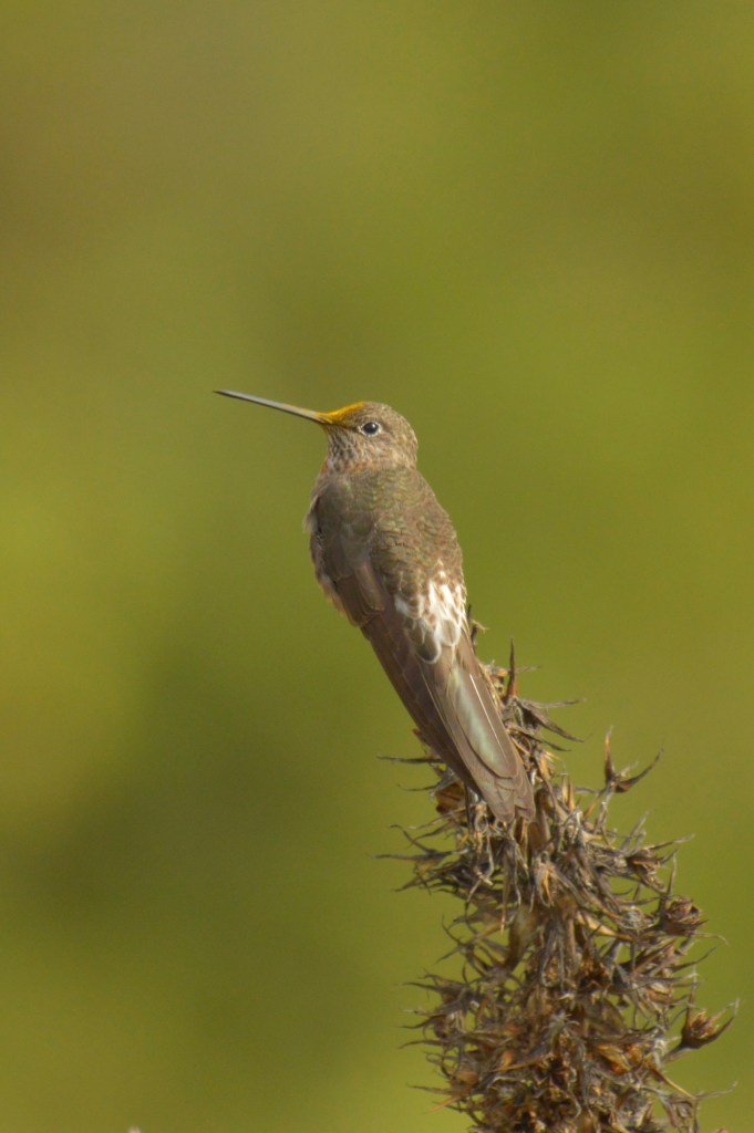 I clocked several new species during the ascent, including a mountain variety of cuy, but I was accompanied for most of the journey by hummingbirds. I counted several kinds: mostly sparkling violetears (they really are everywhere) but also lesser violetears, black-tailed trainbearers, white-bellied and giant hummingbirds, and – at the summit – an Andean hillstar. I have become quite used to the sight of them flitting about from branch to branch, holding themselves almost stationary in the air while feeding from flowers and launching themselves into the abyss of the valley on tiny, invisible wings. I shall miss them when I’m gone.