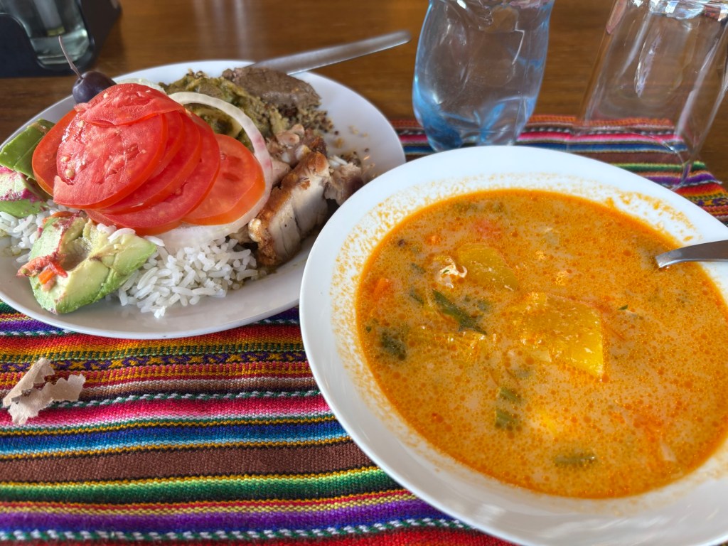 Lunch was a spectacular buffet with a wide array of Peruvian options, including alpaca (tough and beefy), lamb (in a delicious green Andean sauce) and chicharrón, an old favourite. The trout soup I had for starters was one of the best I’ve ever had in my life, and tasted almost exactly the way I always imagined Yeto’s superb soup in Zelda: Twilight Princess (right down to the rich cheesy flavour).
