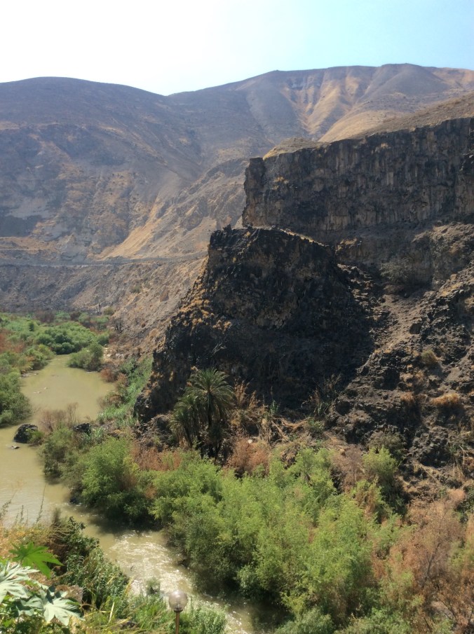 I’ve found a shaded spot for myself in a makeshift bathhouse on the south side of the River Jordan, just a few miles to the north of Umm Qays, and closer still to Israel itself. The Golan Heights tower high above me, shining a brilliant gold in the midday sun. Down below is an offshoot of the Jordan, rushing westwards to its mother before the Sea of Galilee. A night heron flapped lazily past a little while back, and there’s a couple of geese paddling about downstream. The bulbuls aren’t exactly making themselves inconspicuous and all the while the hardy little sunbird is keeping herself busy hurrying to and from a crevice in the cliff. I guess she has a nest in there somewhere.