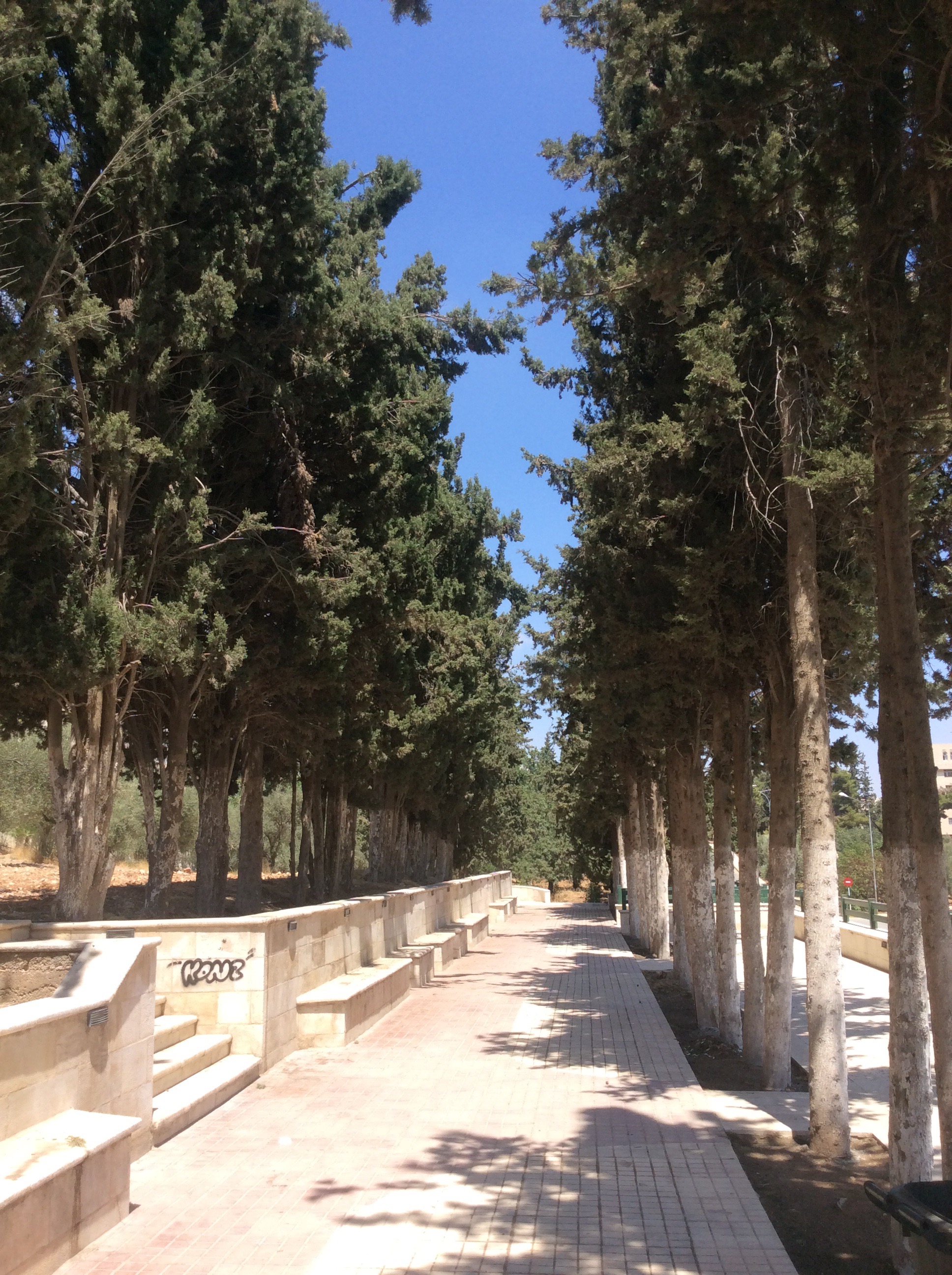 We took an hour and a half of class today out in the sunshine in the Jordanian University grounds. They’re on vacation at the moment, so the grounds were deserted of students and we had the run of the northern campus. I’ve never felt more focused in all my time out here; just a little dose of sunshine, the warbling trill of a sunbird from one of the cedar trees and the taste of air that hasn’t come from a fickle conditioner… I was speaking more fluently than ever before. I guess that drives home this morning’s debate on students being more attentive if given access to green spaces in school. Now that’s something I can agree with! If only we could visit the university more often… It’s a bummer, living right next to the only green space in Amman, and not being allowed to enter it except on official business.