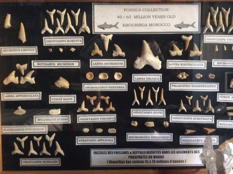 All this and more has been said before, so I won’t sweat it. I haven’t yet got out to explore Tetouan beyond this morning’s trip to the market, so I’ll tell you a bit about my room. It doubles as a library. There are books in at least four languages spread out across a bookshelf that stretches along the length of one wall; Ibn Khaldun’s Muqaddima and Ibn Battūta’s Rihla, Pablo Neruda’s Confieso que he vivido and a French history of the alliance between Moulay Ismail and Louis XIV. There are also fossils everywhere. Trilobites, ammonites, corals and seashells, sharkteeth and even a gigantic bone of some description. My hosts – or one of them, at least – are avid naturalists. You could say I’ve landed on my feet. It’s also got a desk, a luxury I was denied both in Spain and in Jordan and – heaven above – it’s got WiFi. Weak WiFi, but at least it’s there.