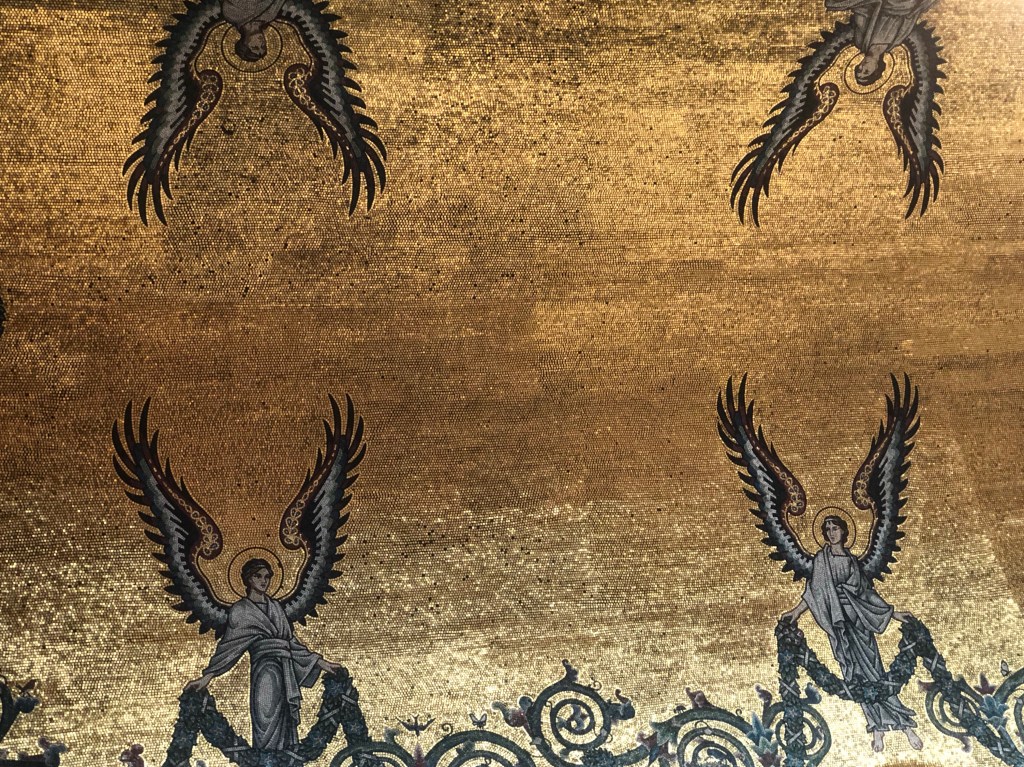The rumble of the buses outside was drowned out by the magisterial rumble of the organ overhead, then piping and blasting, then humming and whispering. I caught snatches of Spanish in the pews to my right. Byzantine eyes burned into my temples from the glittering walls of the aisles. I counted the stations of the cross as far as I could see them and thought about my abortive visit to Jerusalem, laid low by Covid the week the schools closed. Simon of Cyrene carrying the cross, and a man propping his smartphone up against his feet in the nave to take a full-length photo down the aisle, once, twice, three times. A lady in a wimple watching three rows down with an expression that might have been contempt or indifference. Me, a pretender with a Daunt Books tog-bag I forgot I had, crossing myself once again and leaving.