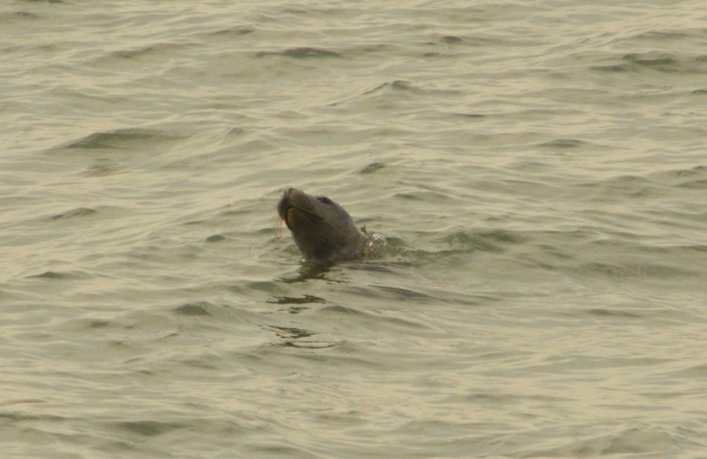 Something bobs in the water closer to the Palace Pier, and without looking through any lens it looks too misshapen to be a buoy. It turns for a moment revealing long whiskers and those baleful black eyes, before sinking beneath the waves. I’ve been scanning the water all morning for that sight, and now I’ve found one, I can’t let the moment pass me by. I count the seconds. One, two, three…