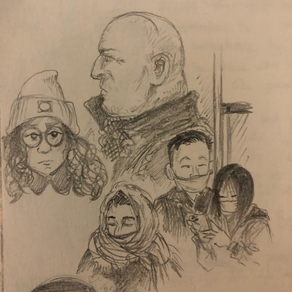 I got the train up to London today with a view to getting my hands on a decent pair of shoes, since I’m told the Italians can be a little snobbish when it comes to standards of dress. With the Northern Line under repairs, it took a little longer to get up to Bloomsbury, so I took a leisurely ride on the Circle Line from Blackfriars and indulged in a favourite pastime: sketching commuters on the Underground. There’s an art to it (no pun intended) – you’ve got to be quick, since most of them only travel a few stops before getting off. And now that face masks are a minority affair, it’s a lot more enjoyable a practice than it was.