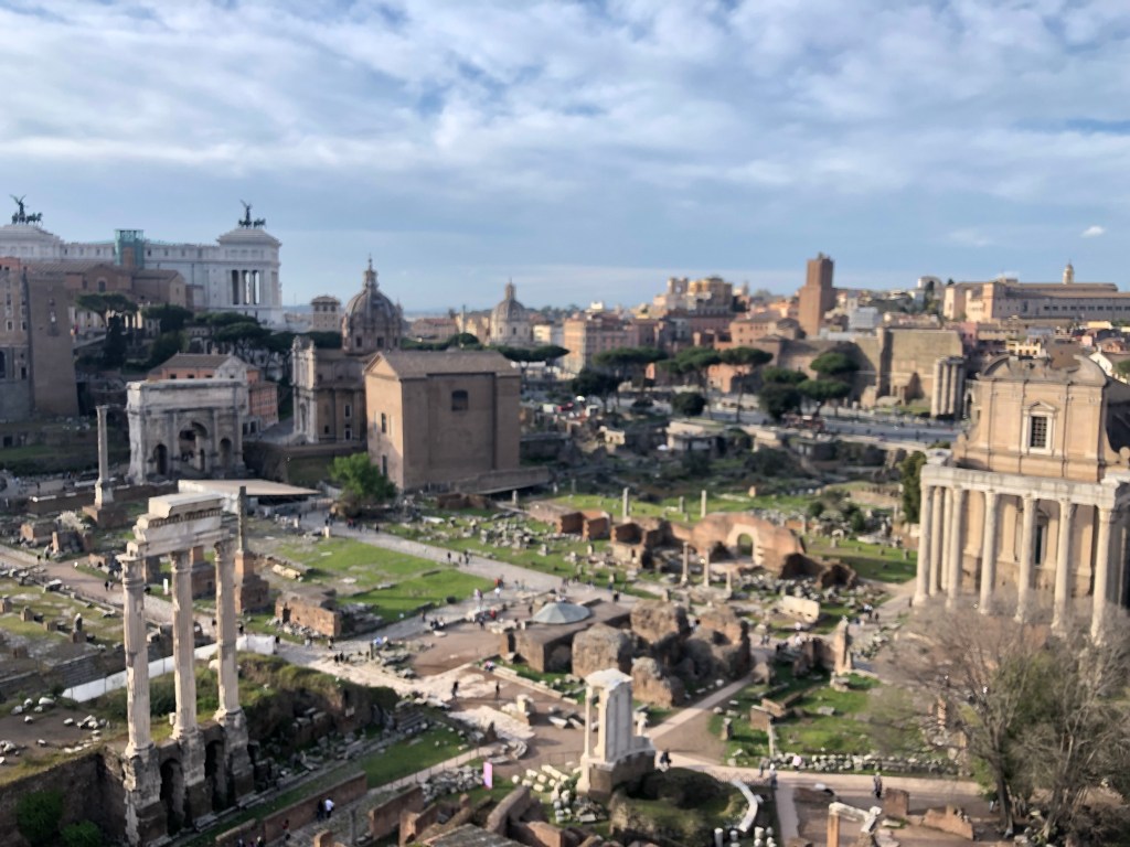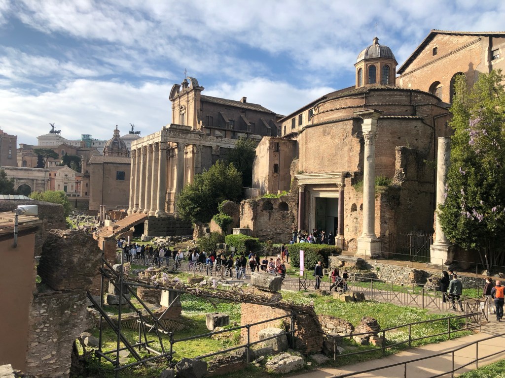 I did get one thing right today, and that was my timing: the blinding white clouds that covered the city all morning were gone by five o’clock, which meant my walk home through the Forum landed right in the golden hour. Blackbirds and blackcaps sang from the olive trees and the crumbling walls as they must have done since before the Romans came. Children played leapfrog between the pillars. A British Indian family had an argument about “too much history for a holiday”, while a Turkish girl made her boyfriend take her photo again and again and again and again under the wisteria tunnel. My services as a family photographer were called upon three times between Titus’ Arch and the Temple of Saturn, but that’s what you get for obviously wandering about with an SLR camera.