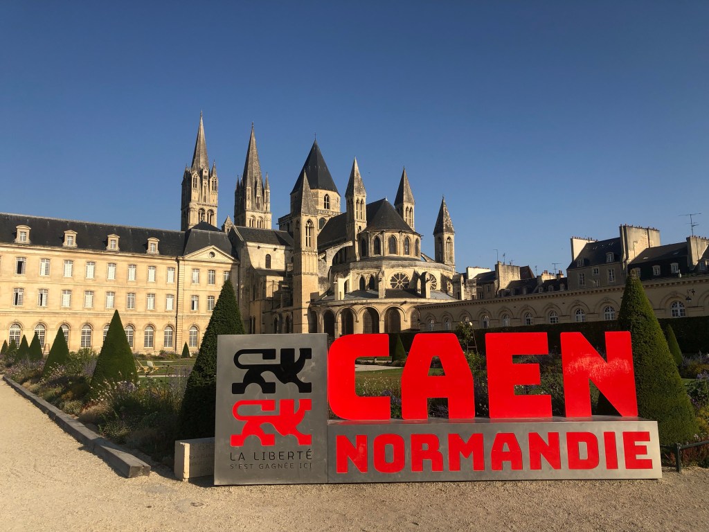 Check-in at my hostel in Bayeux wasn’t open until 4 in the afternoon, so with that early start I had quite a few hours to kill – on what was gearing up to be the hottest day, not just of the year, but in living memory. It was already pushing thirty by 10 o’clock. I took refuge in the shadow of Caen’s Abbaye aux Hommes, where William the Conqueror was laid to rest a little under nine hundred years ago. I thought I’d picked a good spot, and I pretty much had the shade to myself for the best part of an hour until a window cleaner turned up in a monstrous contraption spitting and whirring and grinding and clunking. It took him and his two companions all of five minutes to calibrate the machine into the right spot so he could start cleaning, by which point all the office workers within had long since pulled down the blinds. Why a ladder couldn’t get the job done beats me.