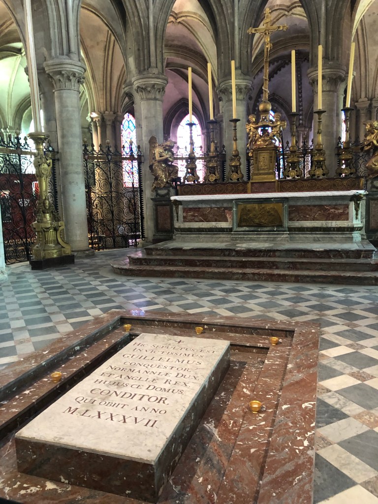 William’s tombstone reads ‘here lies the Invincible William the Conqueror’. Somewhere under that slab is an invincible thigh bone. It’s definitely more invincible than my thighs, which are feeling very vincible in this heat… if that’s even a word.