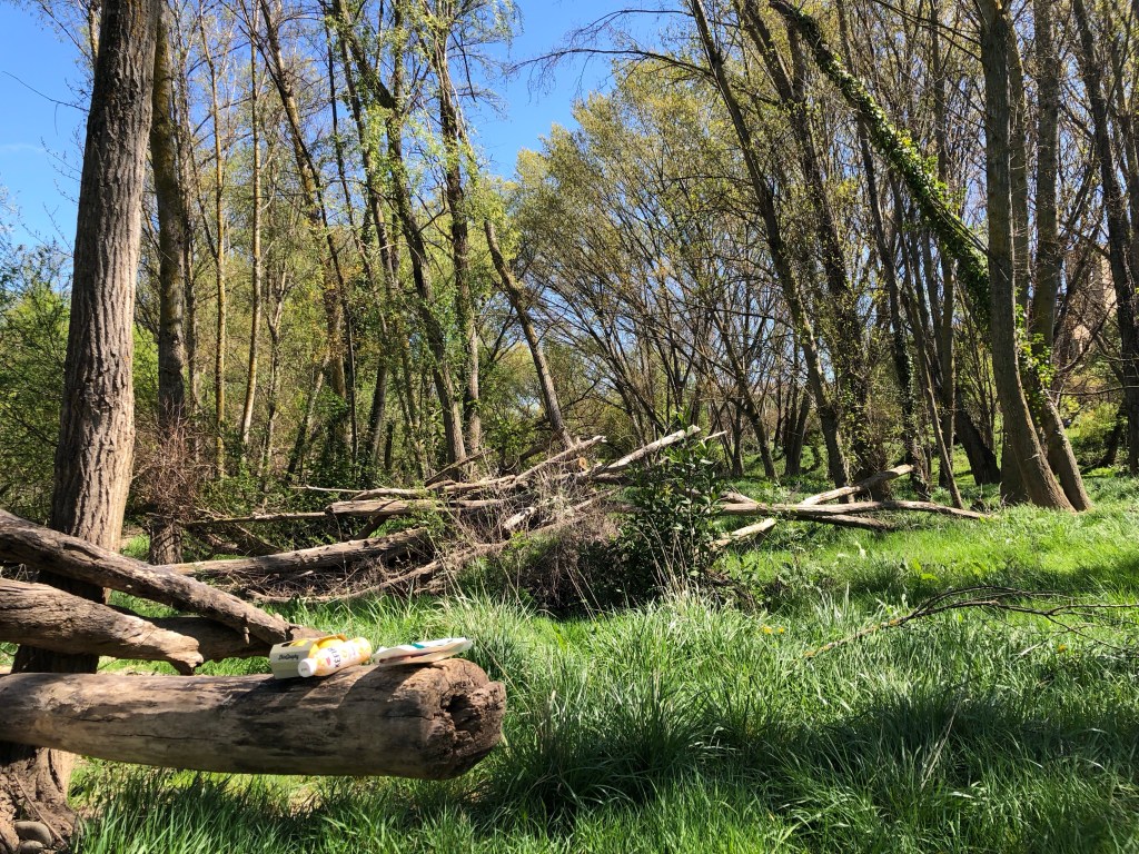 I ate my lunch (chorizo and queso curado in a fresh barra de pan) under a beech tree on the bank of the Ebro river. Spring may be slow in coming to England but she’s been here a while already. The beak-clicking display of the local storks can be heard every so often, even from the albergue, though a drumming woodpecker in the park was giving them a run for their money.
