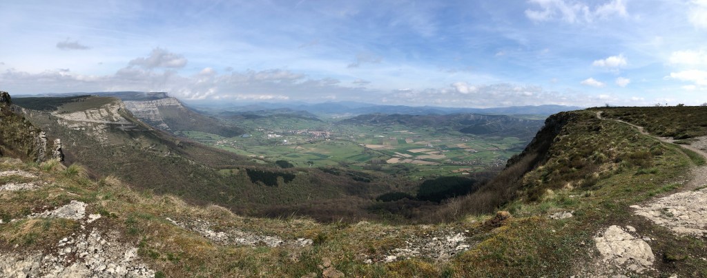 After what felt like an age (but in reality only took ten minutes over an hour) the track suddenly came to a narrow crevasse which cut a path through the karst to the clifftop. With one last screech from the jay echoing after me, I put the cloud forest behind me, pushed the metal gate open and stepped out of the Basque Country and back into Castilla.