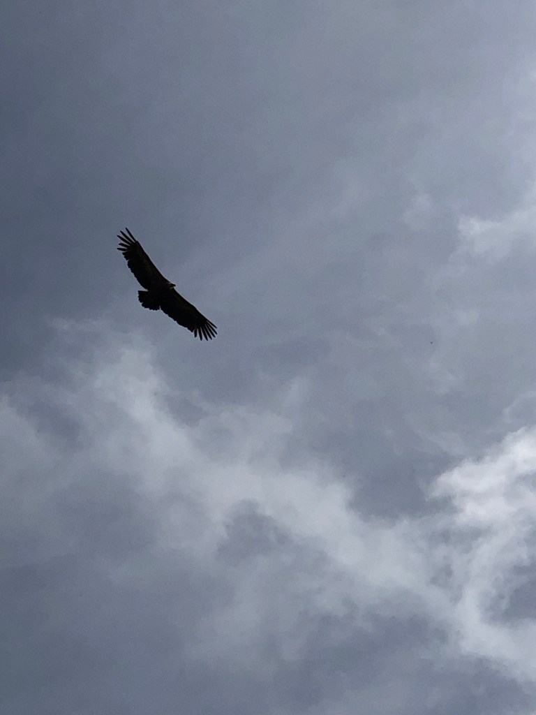 This is a lot easier said than done when the cross country in question is a forest thick with underbrush that happens to be growing on the side of a mountain. The ground under my feet was not always stable, there were thorns everywhere and the animals tracks I was following – boar, I wouldn’t wonder – were not always reliable. The heat of the midday sun was similarly unwelcome, silencing the forest and making my every step sound like a cannon. The vultures circling overhead only added to the dismal state of affairs.