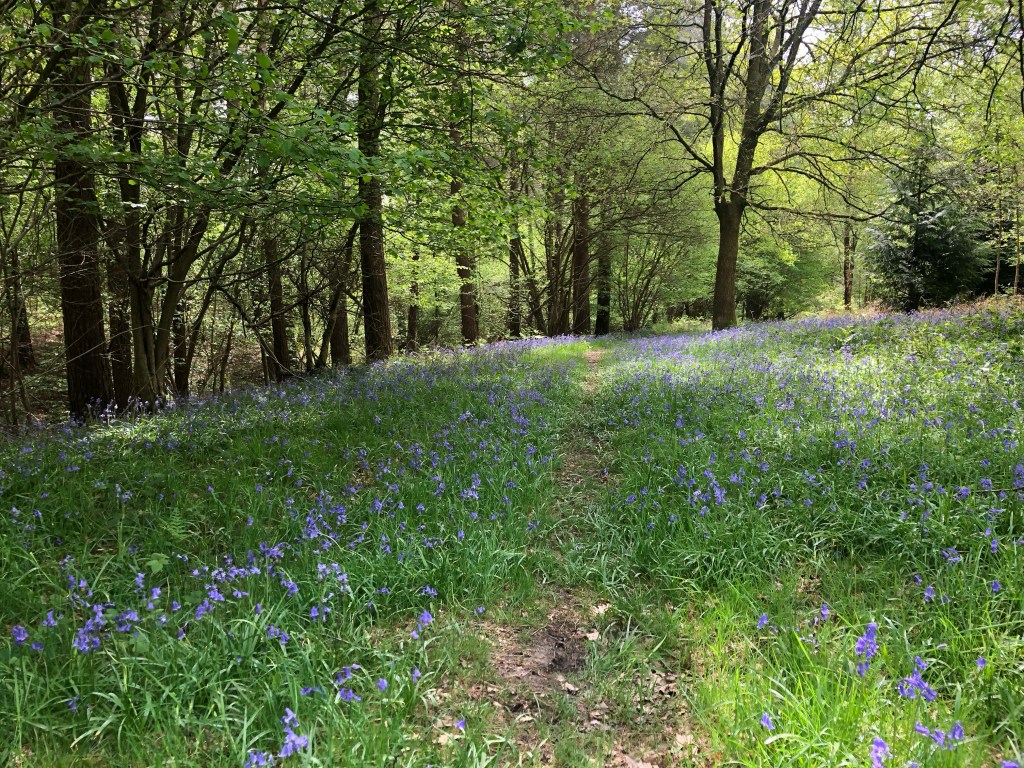 I had a couple of hours between lessons this afternoon, so I took myself for a wander through the estate. I found a toad beneath the remnants of a tarpaulin from the old forest school I used to run three years ago, and a merry carpet of bluebells in their dying days followed me to the deepwoods where a chalk stream gurgles southward on its journey to the sea. A silent pool of rainwater sparked into life as the sun came down, drawing three tadpoles into its warm gaze. Chiffchaffs sang at various intervals, and somewhere overhead, unseen, a buzzard mewed. I didn’t hear our ravens today, but I often do.