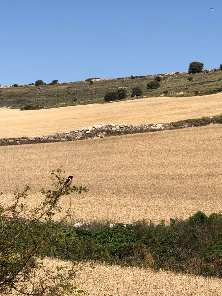Since leaving Burgos, I’ve been accompanied most of the way by the friendly two-tone song of the stonechat. Families of three – a parent and two fledgelings – seem to pop up everywhere, unbothered by my passing in their tireless search for food. Warblers of every kind – willow, Sardinian, fan-tailed and Cetti’s – sing from the hedgerows, signalling the presence of a river long before it comes into view. Corn buntings, wagtails and jolly wheatears pop in and out of sight between the wheatsheafs. Swifts, swallows and martins fill the empty villages with sound, and hoopoes add a flash of brilliant black-and-white when disturbed in the parks and gardens along the way. In the vast Castilian skies, storks, kites, ravens and solitary griffons are a constant presence, and in the fields below, quail and turtle dove sing unseen, their purrs and whistles keeping the silence at bay. And butterflies of every colour and size are so abundant there’s a very real danger of stepping on them.