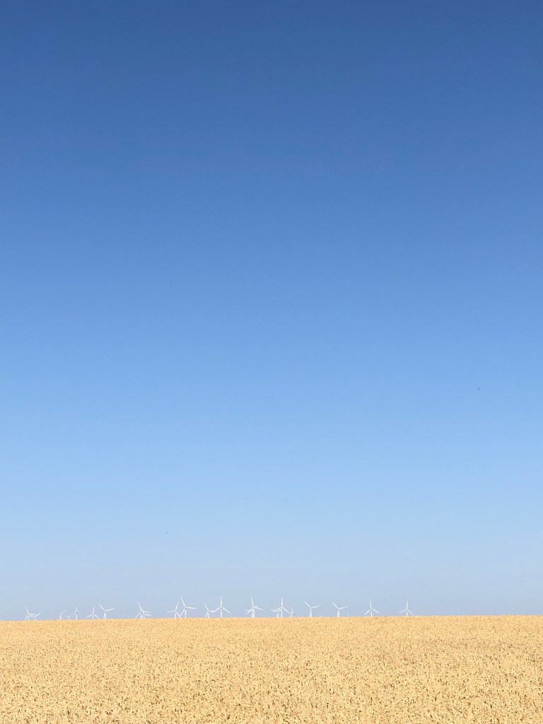 It’s a steep climb after Rabé up into the Meseta proper. The last green hills of Burgos give way to a sea of gold, unbroken at eye level but towered over by a host of wind turbines that make the place a dry parody of the North Sea: similarly featureless, though a great deal warmer.