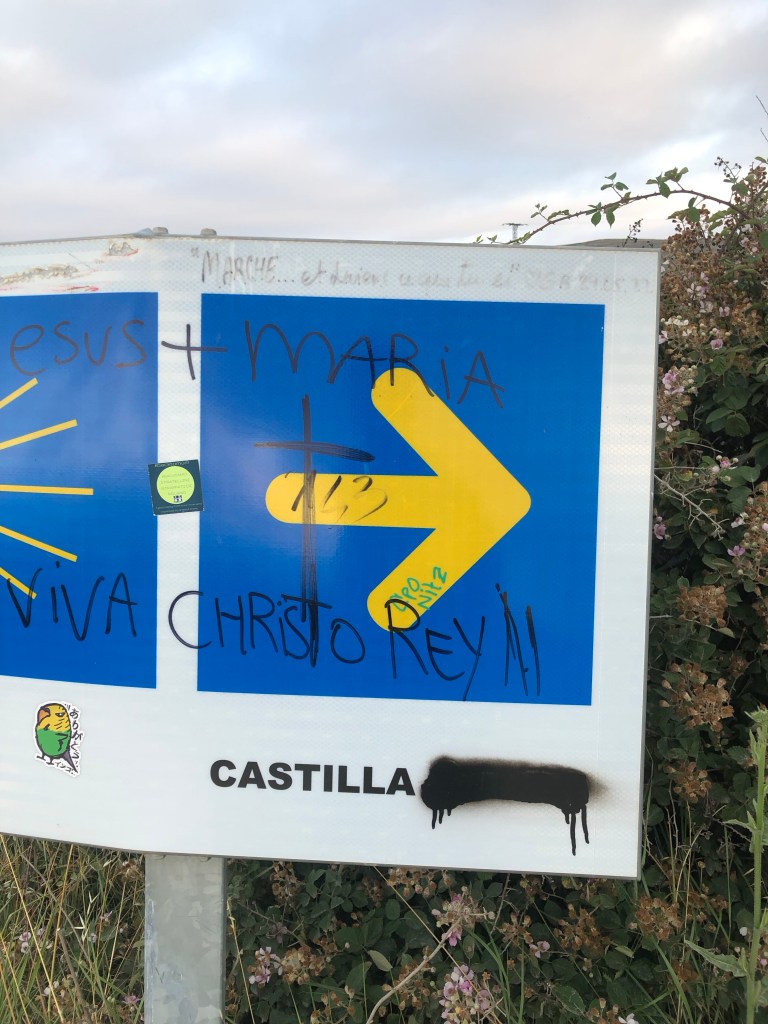 Passing through the mud-brick houses and hobbit holes of Moratinos, you leave the plains of Castilla behind and enter país leonés. And I say país (country) because of the fierce nationalism of the Leonese, whose old and bitter rivalry with their Castilian neighbours is more than obvious if you look below the self-help scrawls and incessant Welsh nationalism on the Camino waymarkers (we get it already!):
