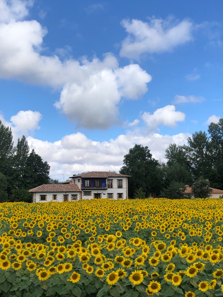 At Villavante, the Camino forks to the north to cross the León-Astorga railway line. It’s practically worth the trek for the view of the Casa Rural Los Molinos, nestled behind what appears to be a private tree-lined sunflower grove.