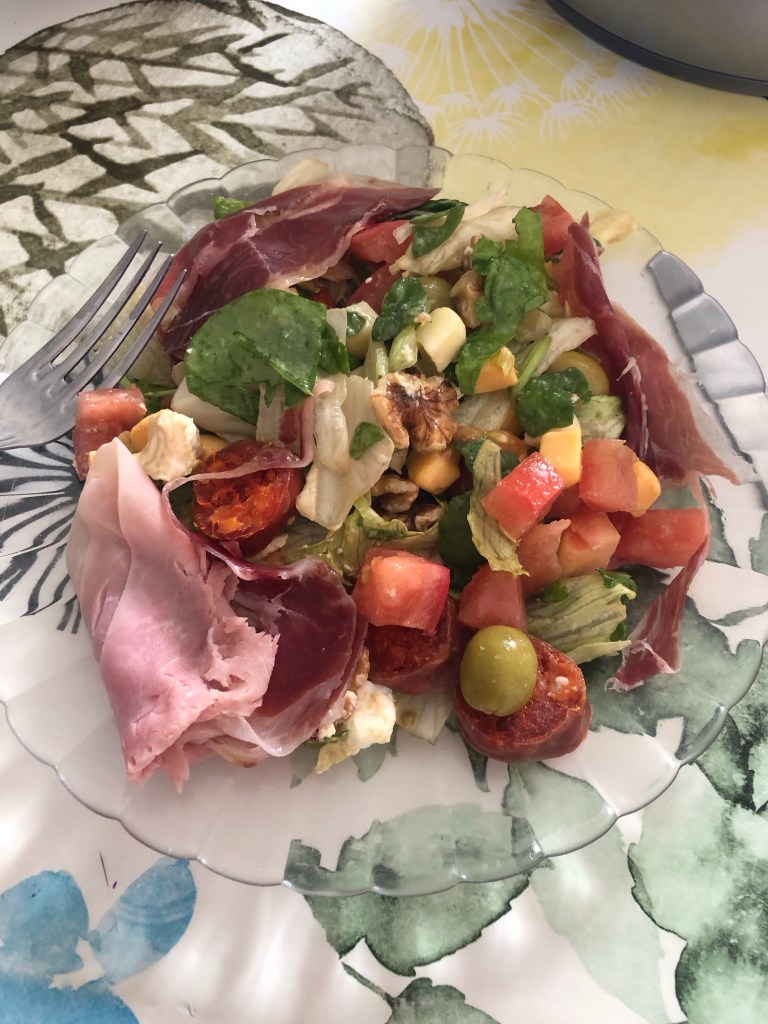 In lieu of a menu peregrino – which can get a bit samey – we bought supplies at a local supermarket for a communal salad. And what a salad! I haven’t even so much since starting the Camino. Good food, good company, good language practice and great exercise. There’s really very little to fault the Camino.