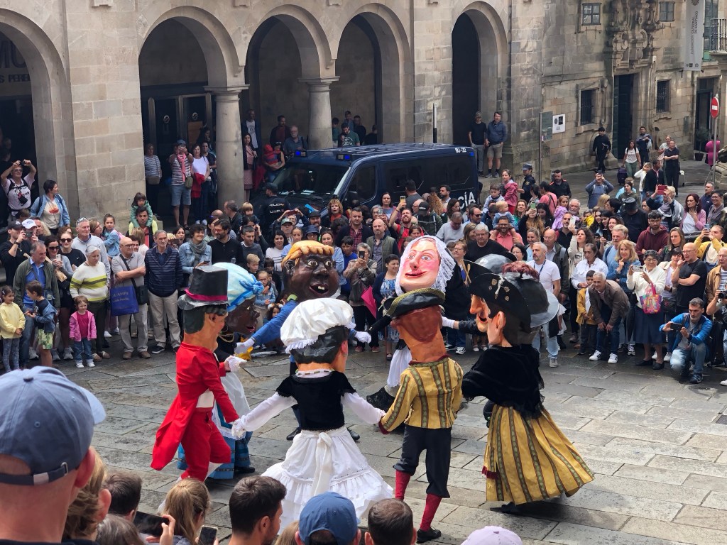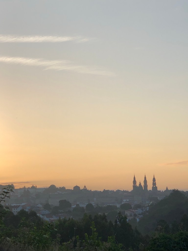 I set off relatively late this morning, leaving the albergue just before seven. If I was expecting a quiet escape from Santiago, though, I was mistaken: all of Galicia’s youth had descended upon the city last night (the 24th/25th being a national holiday, after all) and, in true Spanish fashion, they had made a full night of it. So when I descended into the city proper, the streets were packed with hundreds of twenty-somethings having breakfast in every available bar, café and pastelería. Unlike England, there were no scenes of drunken behaviour at all. The Spanish drink about as much as we do on a night out, but as their nights out last a full four hours longer than ours, it tends to work its way out of their system. And don’t get me wrong, but a Spanish breakfast of Cola Cao and a tostada is a much better end to the night than a dodgy kebab!