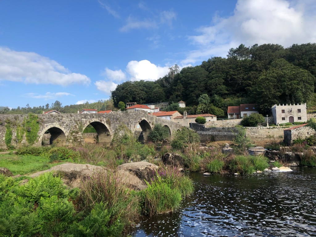 After the tedious stretch between Arzúa and Santiago, it was a welcome relief to rediscover some of the magic of the old Camino on the westward road, devoid of the post-Sarria stampede. Oak forests, Roman bridges and stepping stones replaced eucalyptus plantations and ironworks, and the merry stonechats who have been with me every day of the Camino reappeared, as though the same family had accompanied me all the way from Burgos.
