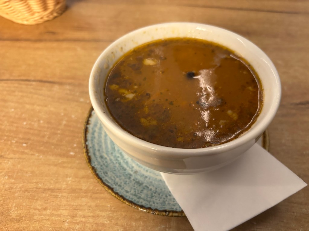 We stopped for lunch at a hotel-restaurant outside Wyszkow. The couple of British retirees provided some entertainment in their desperate search for a vegetarian option on the menu, while the third member of the expedition, a French wildlife photographer from Zürich, wasted no time in wolfing down a bowl of flaczki (beef tripe soup) followed by a rare steak topped with two fat king prawns.
