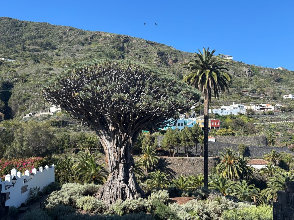 To the east of the park is the famous dragon tree, a bizarre and ancient tree endemic to the Atlantic islands that has supposedly stood in this spot for nearly a thousand years. Its leaves stick out at the ends of its myriad branches like frozen fireworks. The palm tree at its side, usually exotic in its own right, looks almost humdrum next to the dragon tree, which is as rare as it is odd-looking: you’d have to travel all the way to the island of Socotra off the coast of Yemen – the other side of Africa entirely – to find a similar kind of tree.