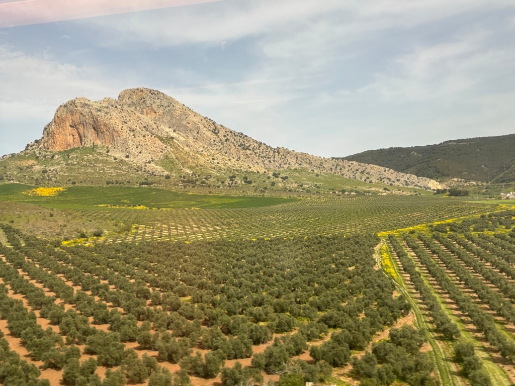 Andalucía hurtles by a in a blur of olive green and marbled brown. I’ve never seen it so green: all that rain Spain must have had last month has completely transformed the place, turning the golden fields of my memory into a paradise on earth. I could hardly ask for a better welcome home to the land of my childhood.
