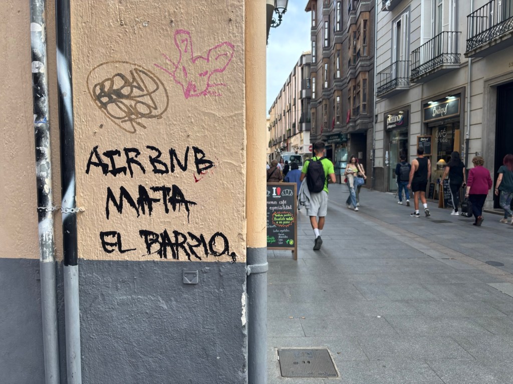 That’s why the phrase “AirBnB mata el barrio” (AirBnB kills the neighbourhood) is scrawled all over the place.