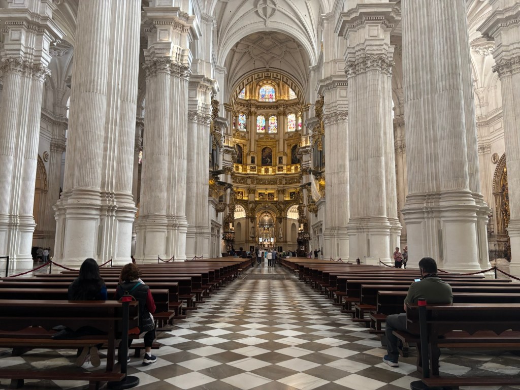 After wrestling with the laundromat and coming away with a clean load of washing (yay!), I went back into the city in search of my Alhambra ticket. Along the way, I dropped in on the Cathedral, hoping to see Fernando and Isabel – and completely forgetting that they’re not interred within Granada’s cathedral at all, but in the Capilla Real next door. There’s a separate entry fee of 7€ for each, coming to 14€ if you want to do both. Of course, if you have the Alhambra card (which I also completely forgot I had bought) then both are covered. So I felt a little bit gulled.