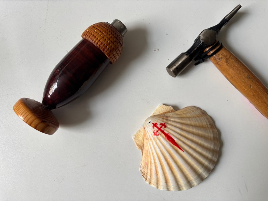 My original shell lasted all of five days, before shattering when I had to remove my rucksack in a hurry after a wasp went up my sleeve and got trapped (the five or six stings it gave me on its way out were with me for weeks!). I took it with me on my last Camino, but I had to have it tucked into one of the outer pockets in its smashed-up state. I didn’t want to buy a shell this time, so instead, I’ve made one of my one using a scallop shell I brought home from Saint-Malo last summer.