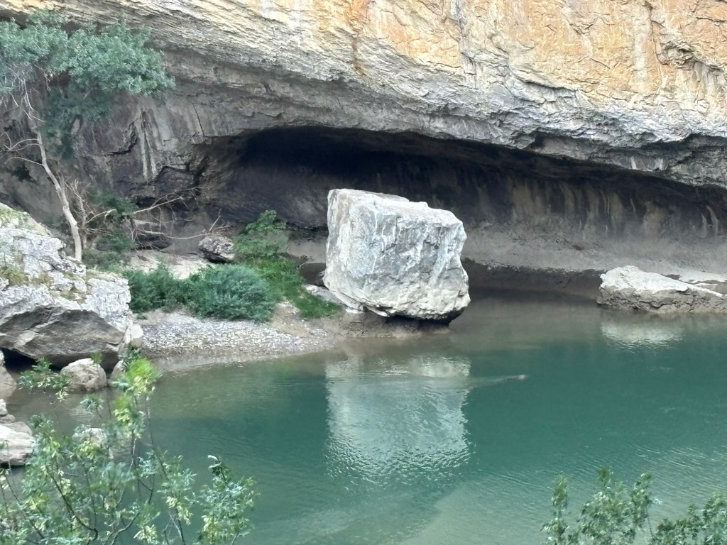 But Lumbier had more than just vultures to sling at me. Just before leaving the gorge, I noticed something moving in the water below. It might have been the wind, which had been making shapes across the surface of the river all morning, but this was moving slowly against the current. Something long, snake-like, with a white-whiskered face: an otter. Talk about a stroke of luck! Just like the lynx I encountered in Doñana earlier this year, this was a first: I have never seen an otter in the wild before, or at least, one that I could call with any degree of certainty. iPhone cameras are good, but they can’t zoom and they’re not brilliant at moving objects in low light, but if you look closely you can just about tell what you’re looking at!