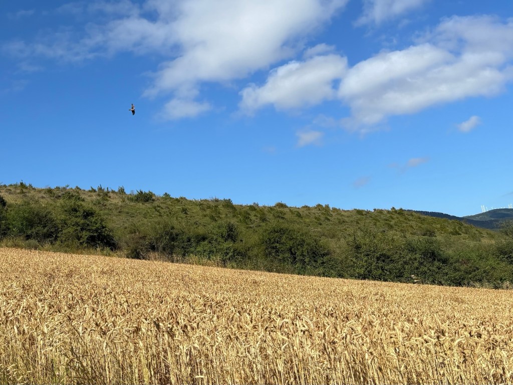 I had a veritable fleet of raptors to keep me company today. As well as the vultures, a few kestrels, buzzards and booted eagles were circling the hills around Izco, along with the usual red and black kites. Today added two new encounters to the mix: a pair of short-toed eagles – exceptional snake-hunters – and a young hen harrier, my first (and hopefully not last) of the Camino. I have an especial fondness for harriers, especially the ghostly grey males, whose long, tapering wings and bouncy flight always conjure up images of the endless meseta in my head.