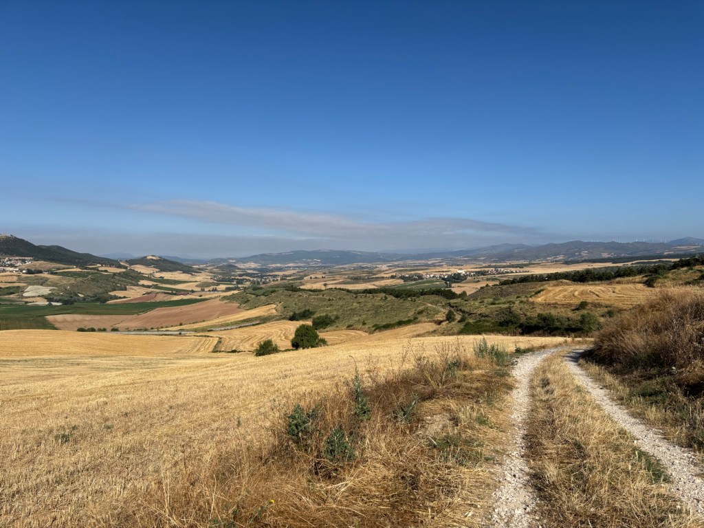 I bade farewell to Aragón two days ago when I crossed the border into Navarra, but today was the “real” goodbye, as the mighty peaks of the Pyrenees slipped beyond the horizon for the last time. I shall miss them. I overtook the seventy-eight year old pilgrim Mari Carmen for the last time and then the road was mine, for perhaps the last time in many weeks.