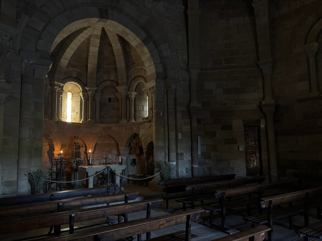 La Iglesia de Santa Maria de Eunate was noteworthy in that it was the first albergue of the Camino so far which was A) open and B) had a stamp for the credencial to offer. I made a promise before setting out on this pilgrimage to pray for one soul in particular in every church I found, so it’s a tremendous source of relief when I can go inside, rather than having to genuflect before the door, under the sun.