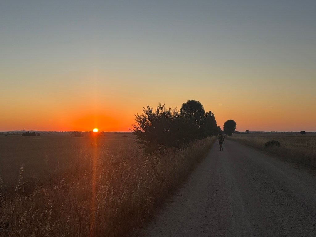 So, at five on the dot, the five of us set out from Carrión and into the night. We lost Edoardo sometime before sunrise – I’m not sure he could keep up, as he does appear to be carrying the biggest stick on the Camino (which probably might be better described as a branch or log). I also got lost: in my stubborn refusal to use artificial light, I completely missed the turn-off to the pilgrim road after Carrión and lost twenty minutes backtracking once I’d realised my mistake. On the plus side, it did mean total silence and an unrestricted view of the night sky, which was spectacular this morning.
