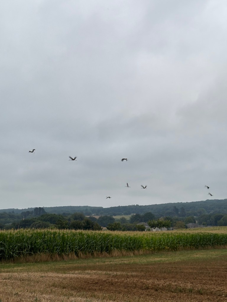 I passed a few fields with storks striding across them. I haven’t seen as many of these majestic creatures since leaving the dry plains and high towers of Castilla y León, and I shall miss them when they’re gone. They really are some of the most beautiful birds to be found in Europe, with their serene stride and their smart crimson legs.