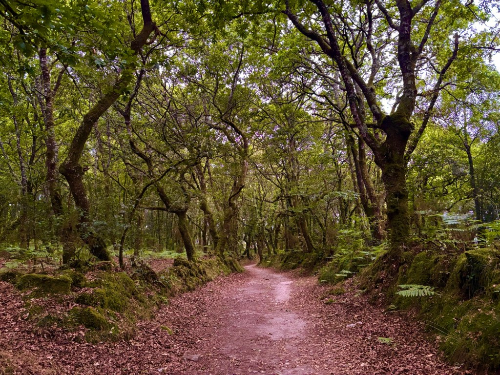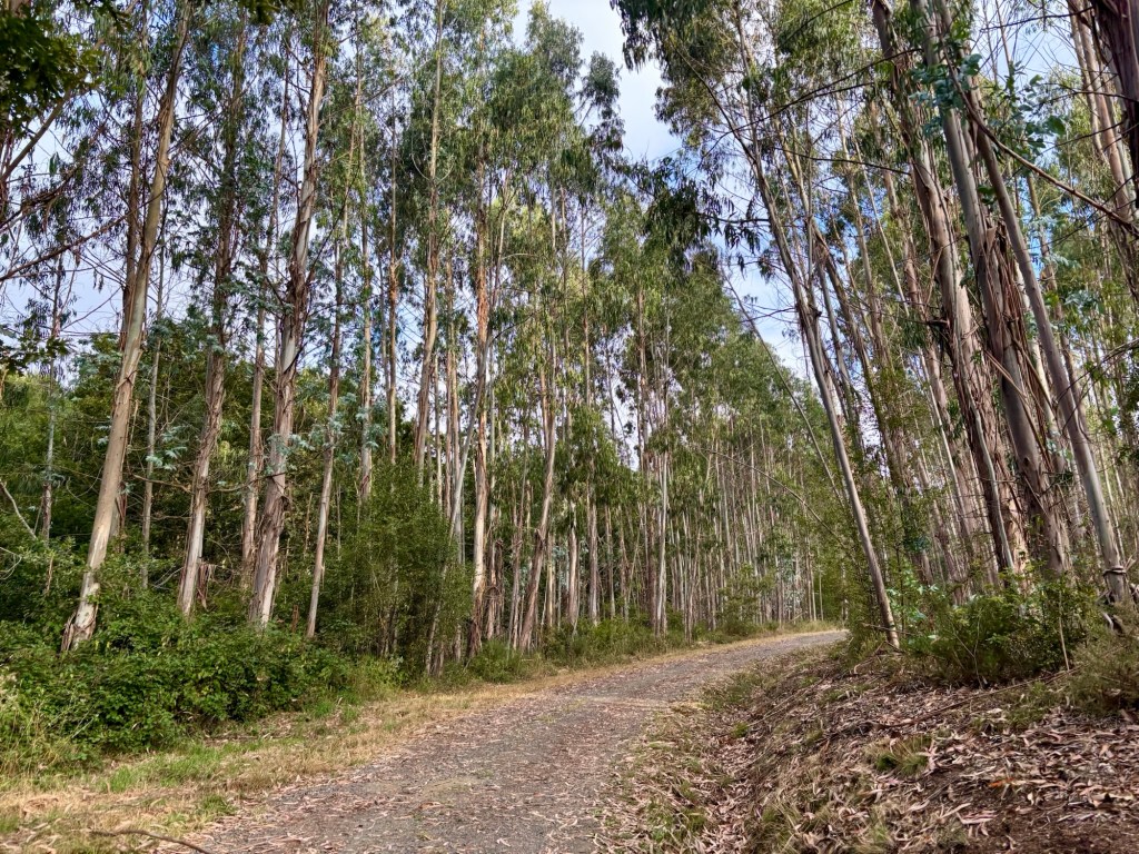 The Camino Primitivo does wind through a lot more woodland than the Camino Francés. This comes in two distinct forms in Galicia: the native ancient oak, dark and twisted, with lichen hanging from its sprawling branches; and the introduced eucalyptus, a pet project of Francisco Franco, tall, bright and peeling like a hapless tourist under the Spanish sun, its sickle-shaped leaves carpeting the road like so many paper blades.