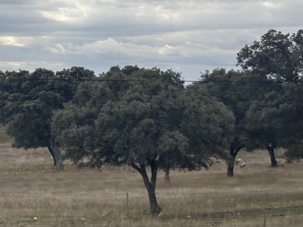 You can see some of that without even leaving the motorway. Every winter, more than 75,000 common cranes travel from their breeding grounds in Northern Europe to this remote corner of the Iberian peninsula. They spend the colder months in the shade of the dehesas, feeding on acorns. They’re a rather common sight if you look beneath the trees, and at over a metre in height, they’re hard to miss.