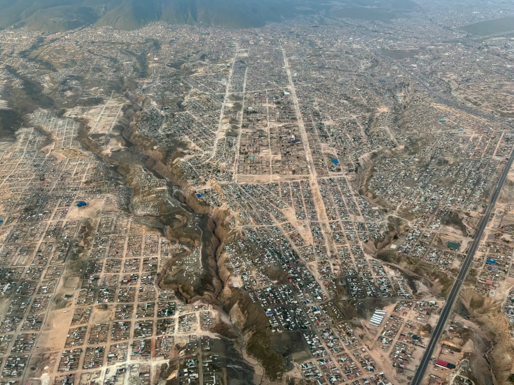 From the air, Lima looks a lot better than it does from the street. You can really appreciate the might of the Atlantic swell as its parallel waves break upon the winding coastal cliffs that separate the city from the sea.