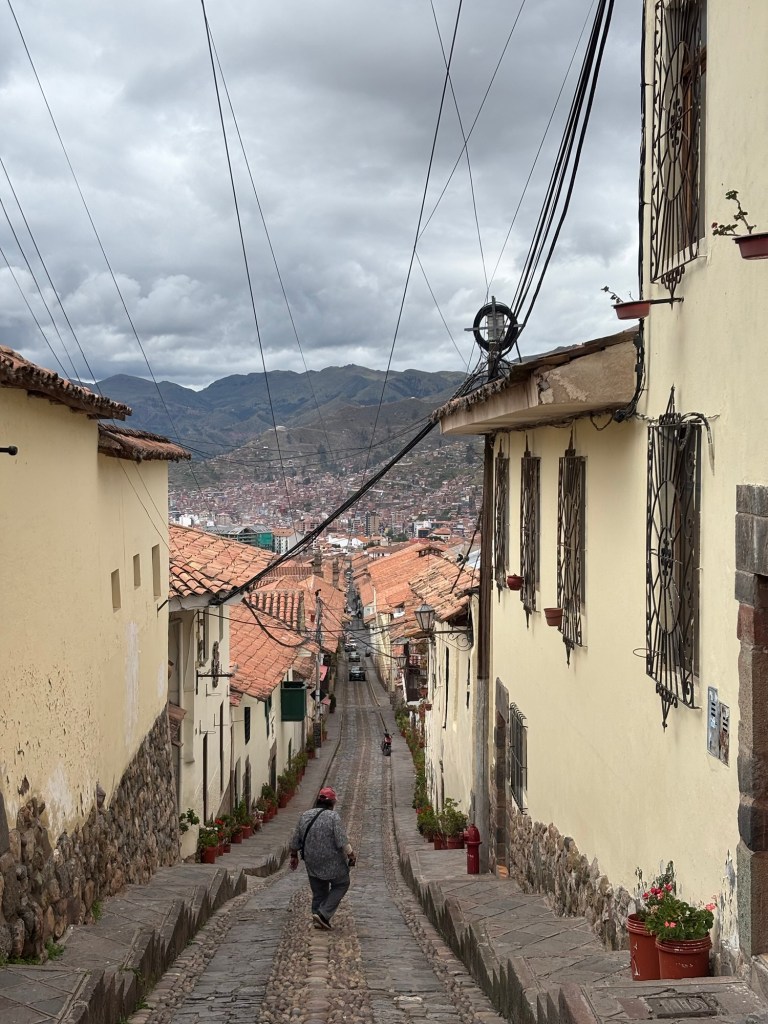 Overnight, I’ve gone from one of the tallest people in town to one of the shortest. Or at least, on a par with the locals. That’s because Cusco is awash with tourists, as it surely has been ever since Machu Picchu was rediscovered. Towering Germans, athletic Americans, French and Italian girls walking around in legging shorts that seem at odds with the local custom of long dresses, heavy socks and boots.