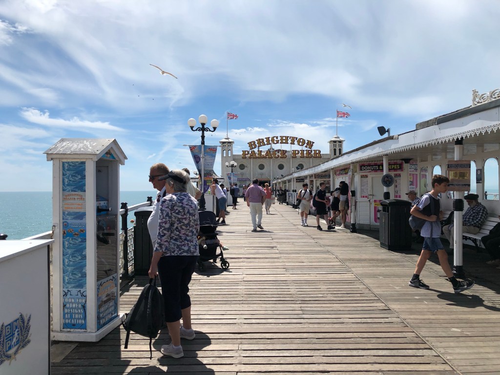 After nearly betraying humanity over a jellyfish and admiring the beautiful world beneath the waves for an hour, I promptly went outside, climbed the steps up to the palace pier and ate a battered fish with chips and vinegar. The irony was fortunately lost on the hoarse chippie vendor, who barely got the order numbers out in a grating voice. A group of girls next to me got their orders in after me, but somehow got their orders out first. £8.20 for fishcakes and chips seemed a bit steep compared to the £5.40 deal just 200 metres from the pier, but it was good quality, and since I barely managed to finish it, I didn’t have to wash it down with a tot of buyer’s remorse.