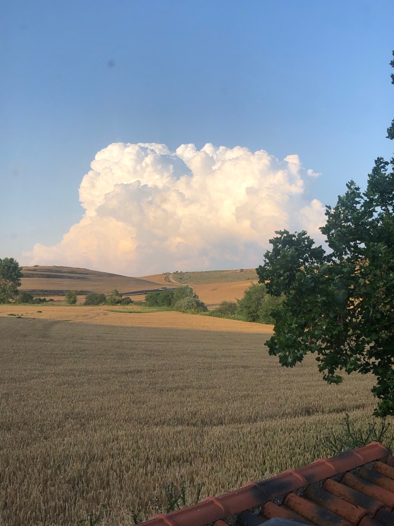 Well now, I’m here in Castrojeríz, and the kindly hospitalera has just returned from the hospital in Burgos. Her husband, with whom she runs the albergue, is currently walking the Camino himself. After a very light dinner last night I treated myself to a menu del día at a local mesón-restaurante. The barman must have clocked my La Mancha shirt because he brought out a lovely red wine from Tomelloso, just down the road from my family’s home. They didn’t have any sopa castellana – apparently it’s too hot for that – but the salmorejo he recommended was fantastic. So don’t worry, Mum, I’m eating very well out here!