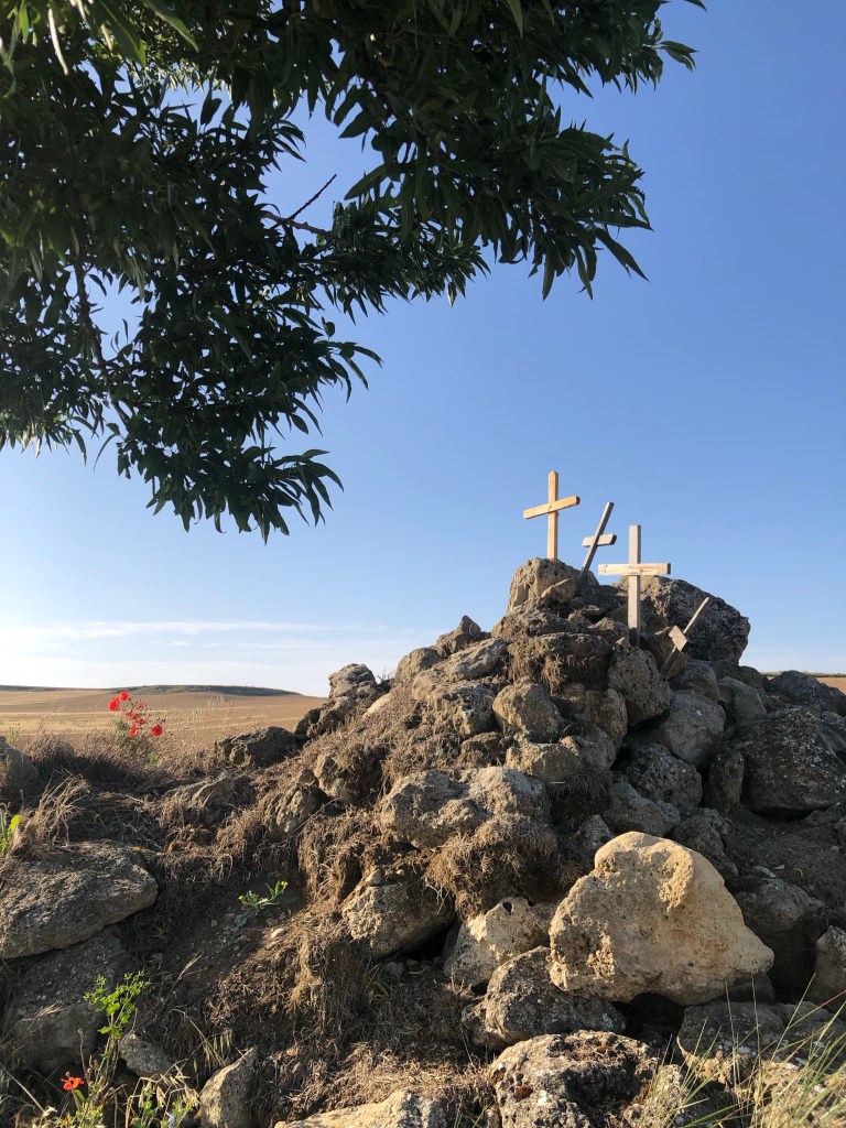 I’ve passed a couple of roadside graves today (not pictured for obvious reasons). They were quite a common sight on the first couple of days of the Camino, where the mountain pass can be dangerous under the wrong conditions, and tended to be Asian or Latin American in origin. Out here in the middle of the Camino, however, the meseta proves a challenge that isn’t always insurmountable, claiming Spaniards and even the hardy Dutch. I try to say a small prayer at each one I pass. By the looks of the painted stones at their feet, I’m not the only one.