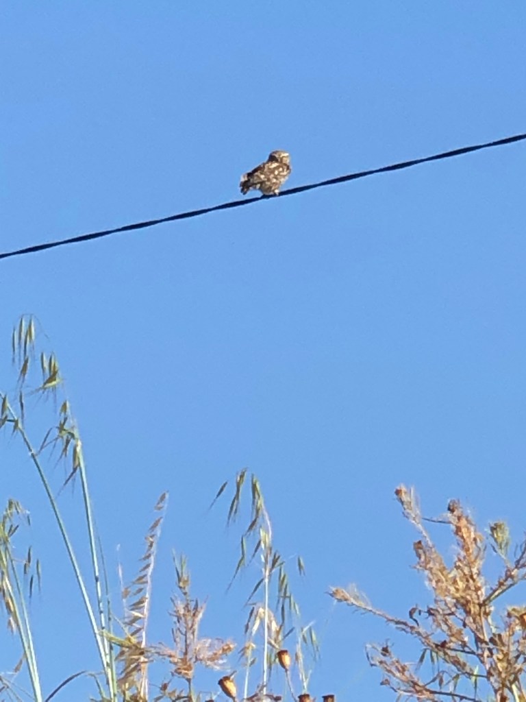 Hontanas seems to be a magnet for pilgrims. A sizeable number had stopped for breakfast at the first café, leaving the road ahead clear. I had only a few cents left in my wallet, but I still spent a good ten minutes there, though that was because I caught sight of a little owl perched on the wire opposite the café. I deliberately didn’t bring my camera as it would have been one belonging too many on the road, but I regretted that decision more than once today – my phone camera simply doesn’t do justice to the beautiful little thing!