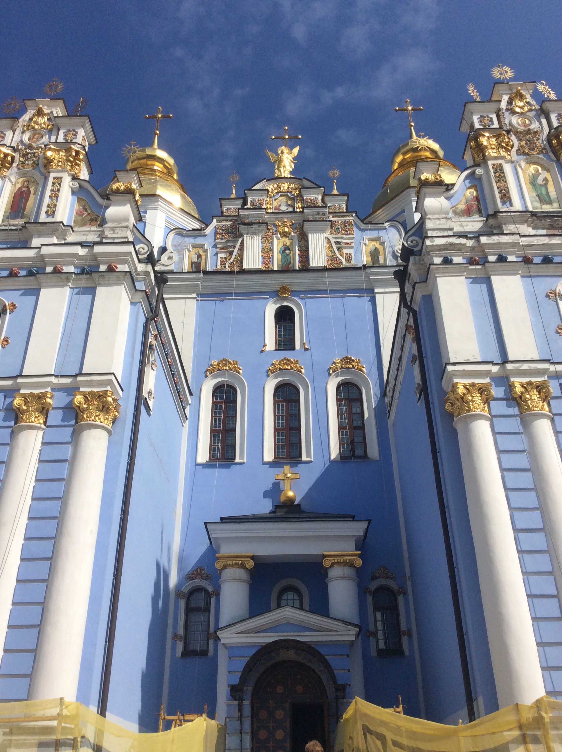 The miracle of Kiev is that there is so much to see in so small an area. Like I said, a world away from Amman. In just under four hours we had covered almost everything there is to see. Beginning with St. Volodymyr’s Cathedral, an elaborate Orthodox affair in gold leaf and black-robed majesty, we set off an a tour of the old city. There’s something really special about Orthodox churches. At first glance it all looks a bit showy: giant crosses, bold block colours, gold used just about wherever there’s breathing space, not to mention all the icons. But it’s a great deal more complicated than that. It was Andrew who pointed it out to me. The congregation, outnumbering the sightseers by about nine to one, were mostly women, in varying states of dress, but the one thing they all had in common was the wearing of a headscarf. A kind of step-down for us from Jordan, perhaps.