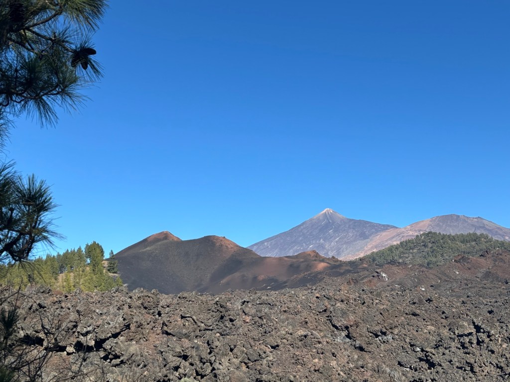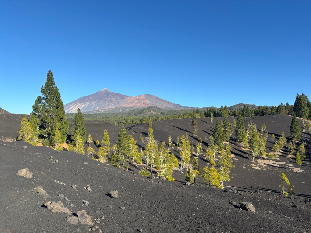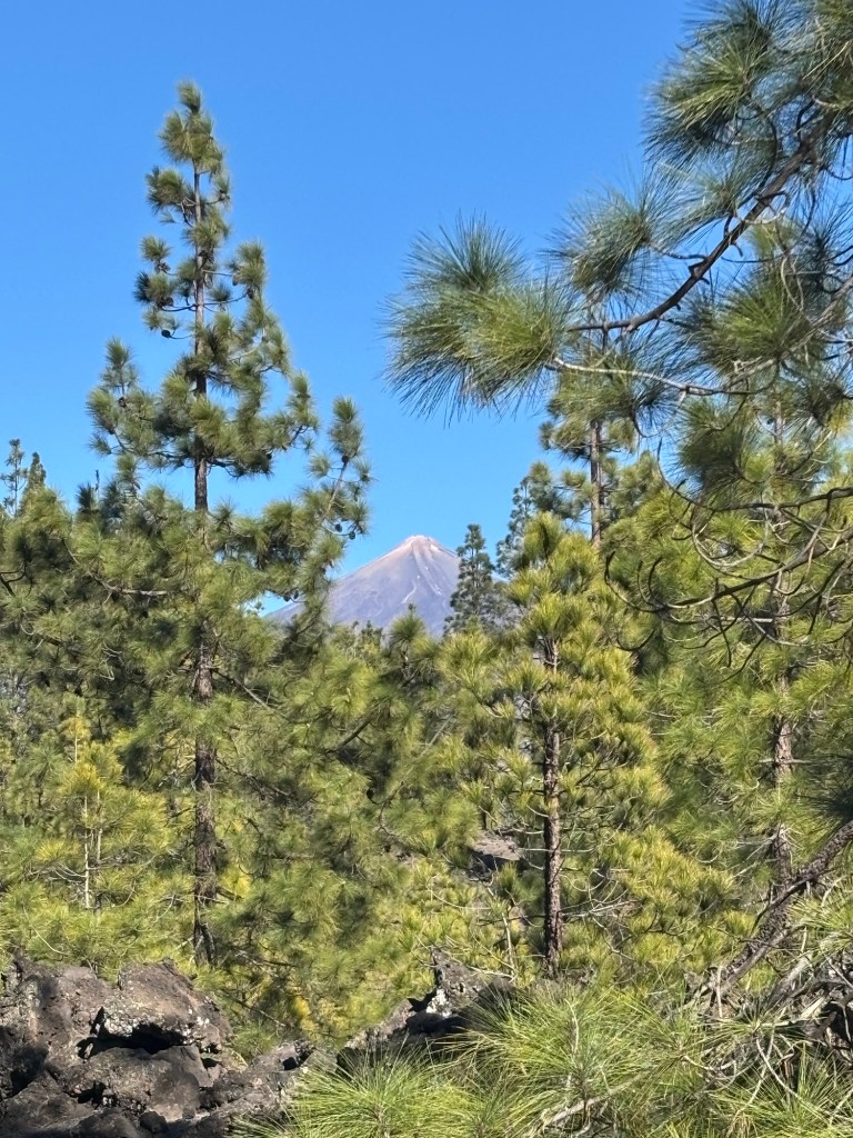 Chinyero is the reason I’m here. This is the site of the last eruption in 1909, Chinyero being one of the vents of Teide, which looms over everything to the west. This is also Teide’s best side: from here, it is perfectly conical, like a child’s drawing of a volcano, and at this time of year you can still see the last traces of snow and ice in the deep gulleys running down its peak. Sure, the Roque Cinchado may have been a worthy candidate for one of the Top Ten sights of this trip, but what I really wanted to see here in Tenerife was the black sand forest: a natural marvel growing out of the destruction wrought by Teide over a hundred years ago. I was not to be disappointed.