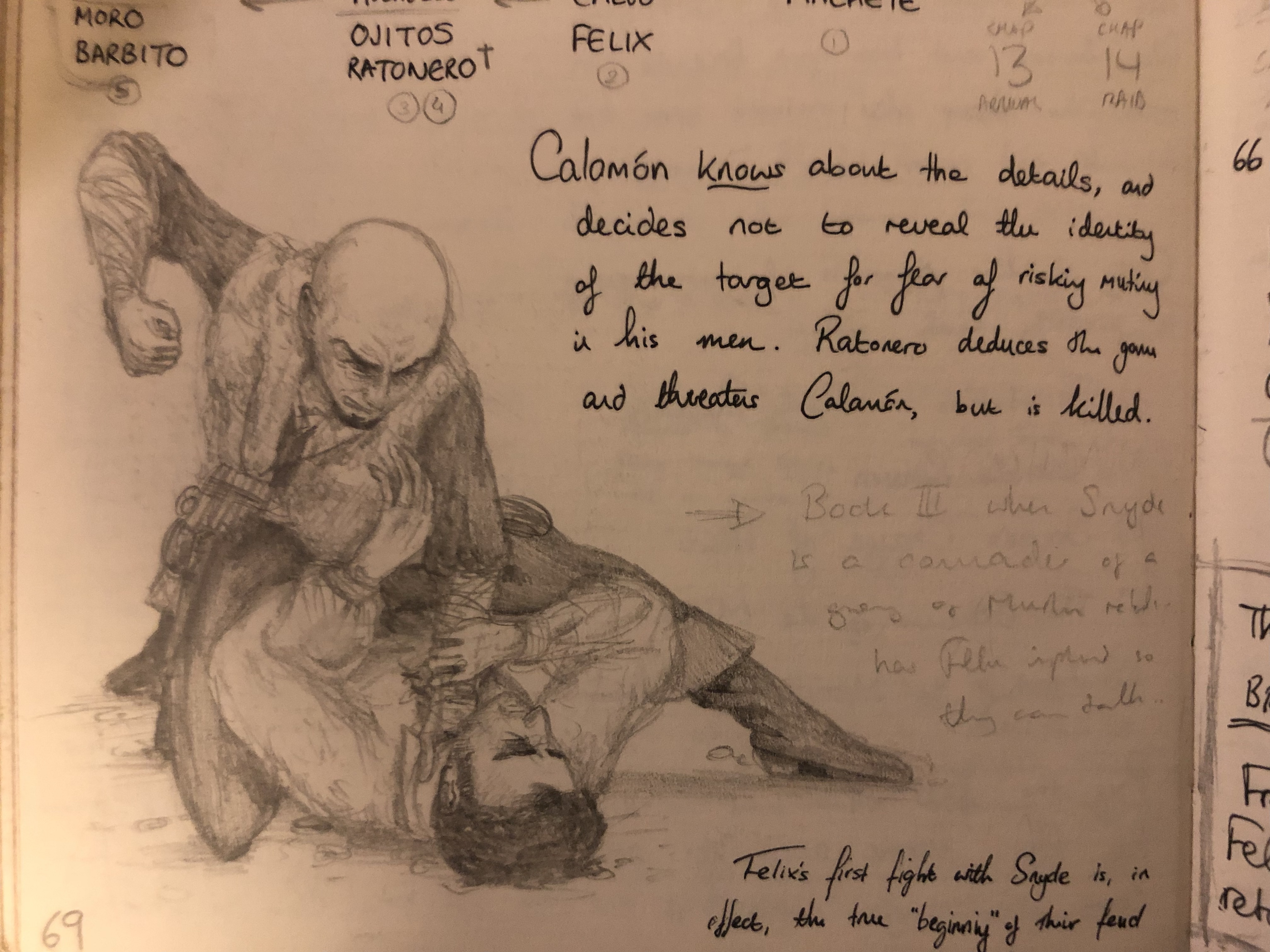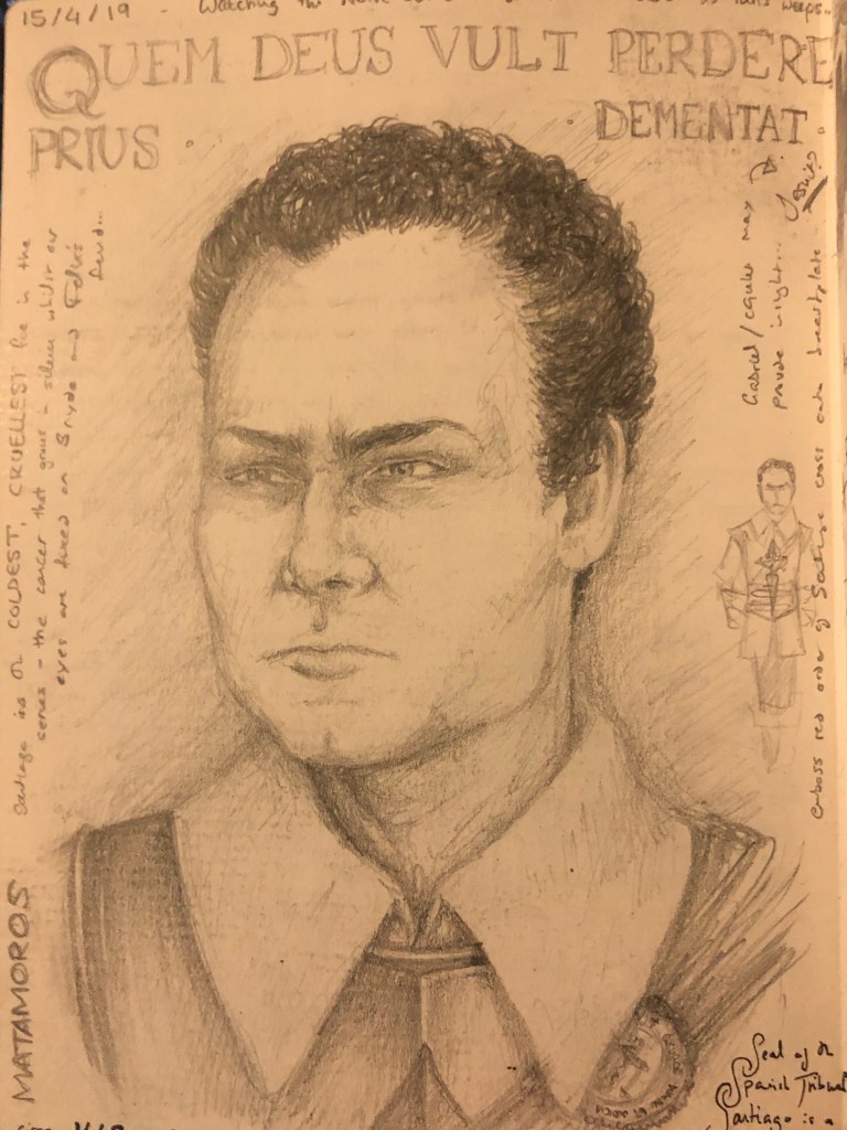 I think the thing I like best about Desalma is that he is nothing more and nothing less than a product of my own jealousy. Perhaps that’s why jealousy is one of his defining traits. Some villains you create to serve a purpose within the wider story arc, others are heroes who just weren’t good enough. Desalma is neither of these. He appeared fully-formed in a moment of weakness in my teenage years, moulded about an imagined rival for the attentions of a girl I had a thing for at the time. The crush didn’t last long, and the jealous rage that birthed him was even shorter-lived, but Desalma stayed, growing cancer-like from that first appearance into an evil that transcended all of the villains I’d written into my stories.