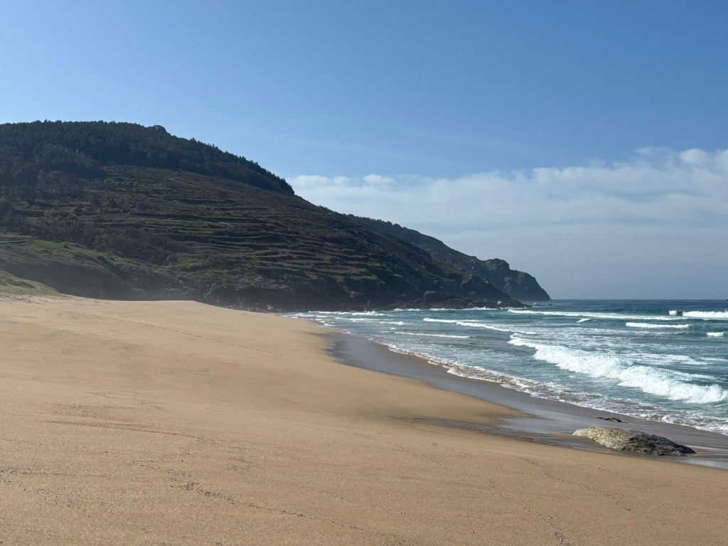 Back at Langosteira, I remove my sandals and continue along the beach barefoot. The relief as the waters rush over my tired feet is like nothing else. There are no swimmers out – it’s much too early in the year – but I’m happy to have my feet in the water again.