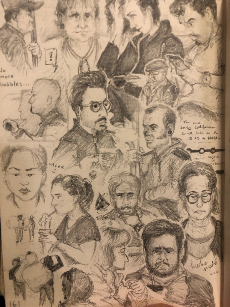 I got the train up to London today with a view to getting my hands on a decent pair of shoes, since I’m told the Italians can be a little snobbish when it comes to standards of dress. With the Northern Line under repairs, it took a little longer to get up to Bloomsbury, so I took a leisurely ride on the Circle Line from Blackfriars and indulged in a favourite pastime: sketching commuters on the Underground. There’s an art to it (no pun intended) – you’ve got to be quick, since most of them only travel a few stops before getting off. And now that face masks are a minority affair, it’s a lot more enjoyable a practice than it was.