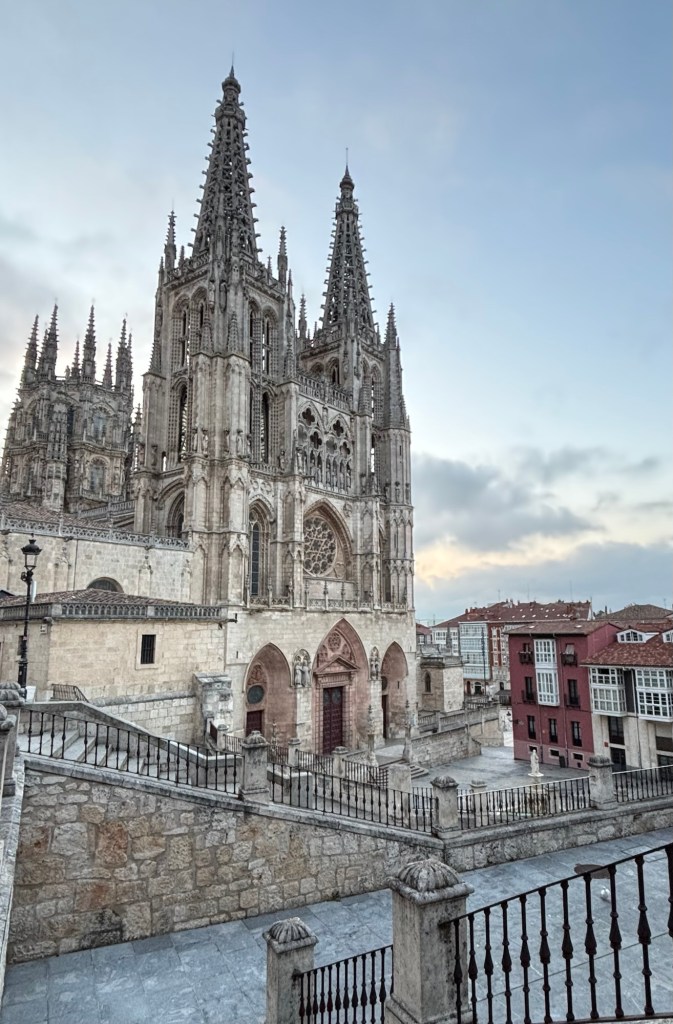 The hospitaleros at Hornillos left out a proper spread for breakfast, so we ate well today. Even so, we were up and gone by 6.20am, shortly before sunrise – which is getting noticeably later each week. The turbines on the surrounding hills continued to spin in the twilight, their red warning lights blinking like eyes along the blue horizon.