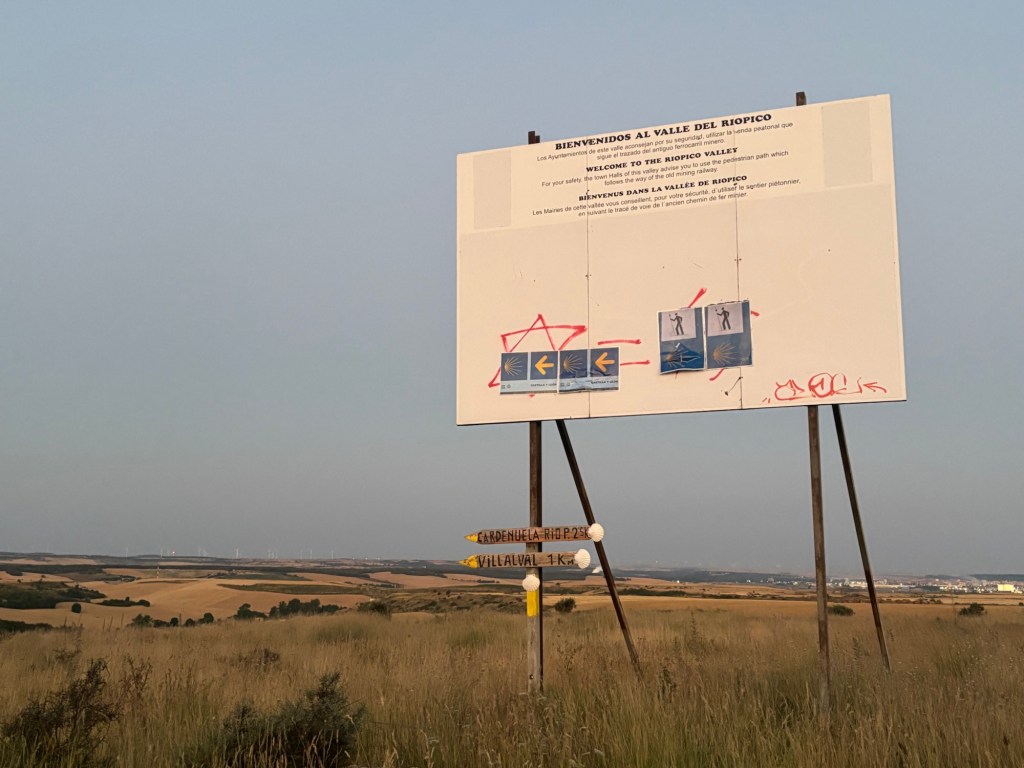 We reached Burgos early, despite missing the turnoff for the Río Arlanzón alternative (which I maintain is bloody well hidden, as I’ve now missed that turning twice). The result was at least half an hour of trudging through Burgos’ deeply unattractive industrial estate on the eastern side of the city, so we amused ourselves with a protracted game of Just a Minute, at which Talia proved to be a past master.